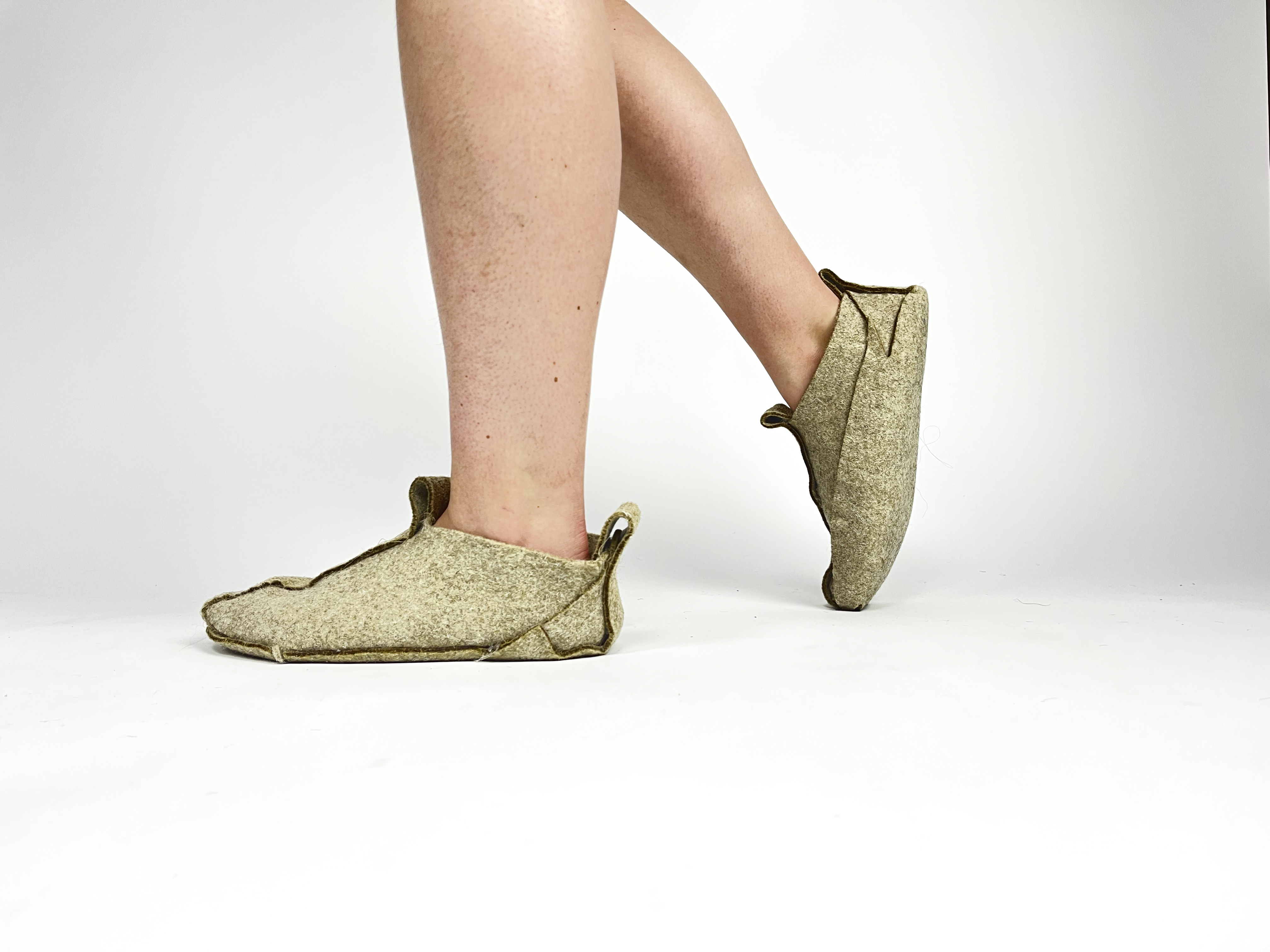 Laser-Cut Merino Wool House ShoeSLIPPIE is the Modern House Shoe for the Modern Woman. Laser-cut from 3 pieces of wool, SLIPPIE models after running sneakers, but creates a sense of comfort unique in house-shoes.